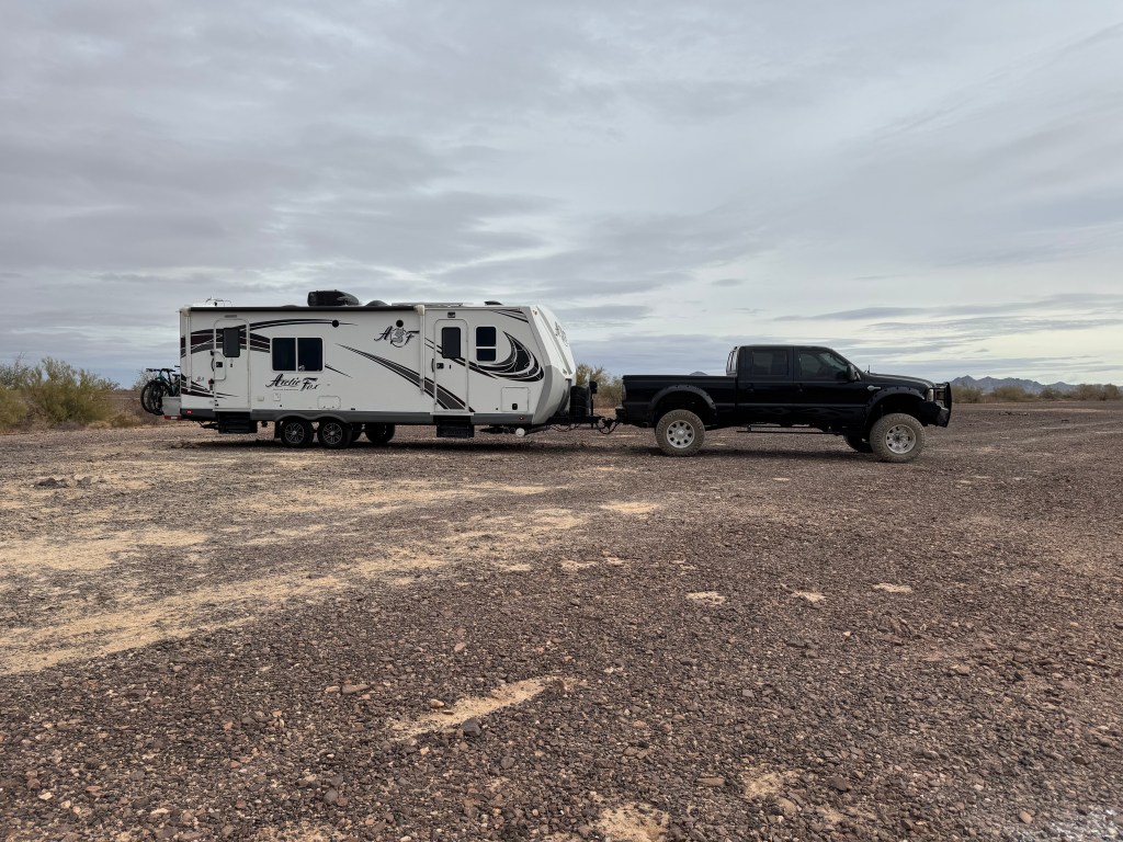 As we rolled into Quartzsite, we immediately noticed the contrast from the usual chaos of the RV show season. While there were plenty of RVs around, it wasn’t overcrowded. After a quick search, we found the perfect spot—peaceful and expansive, surrounded by open desert.