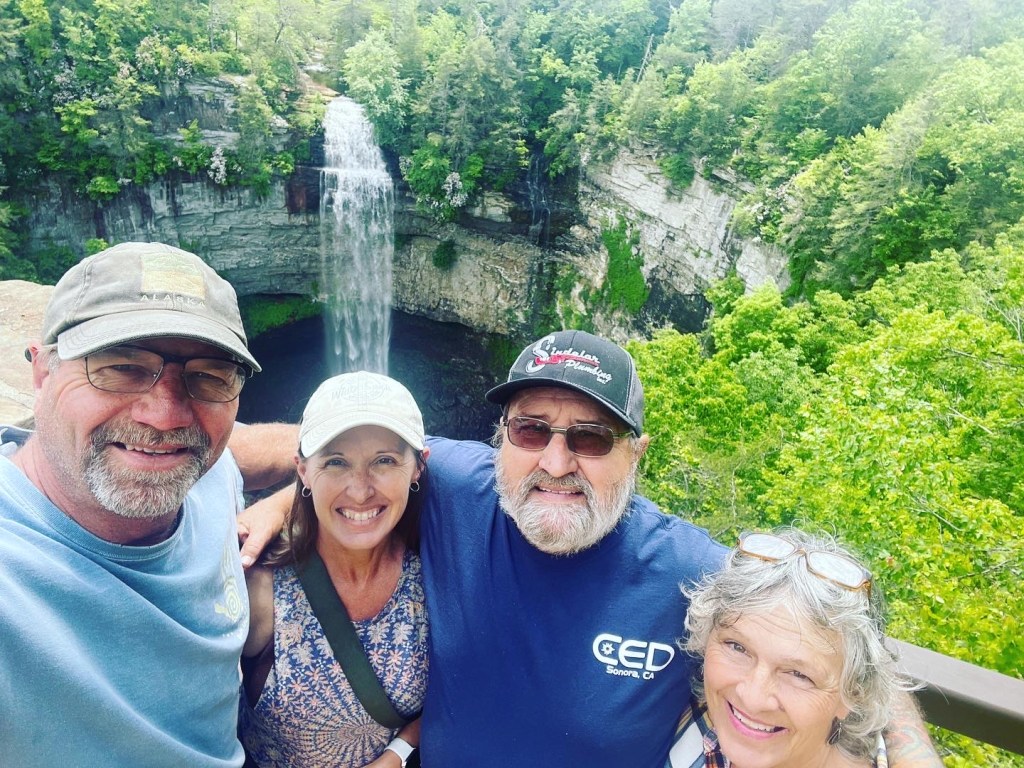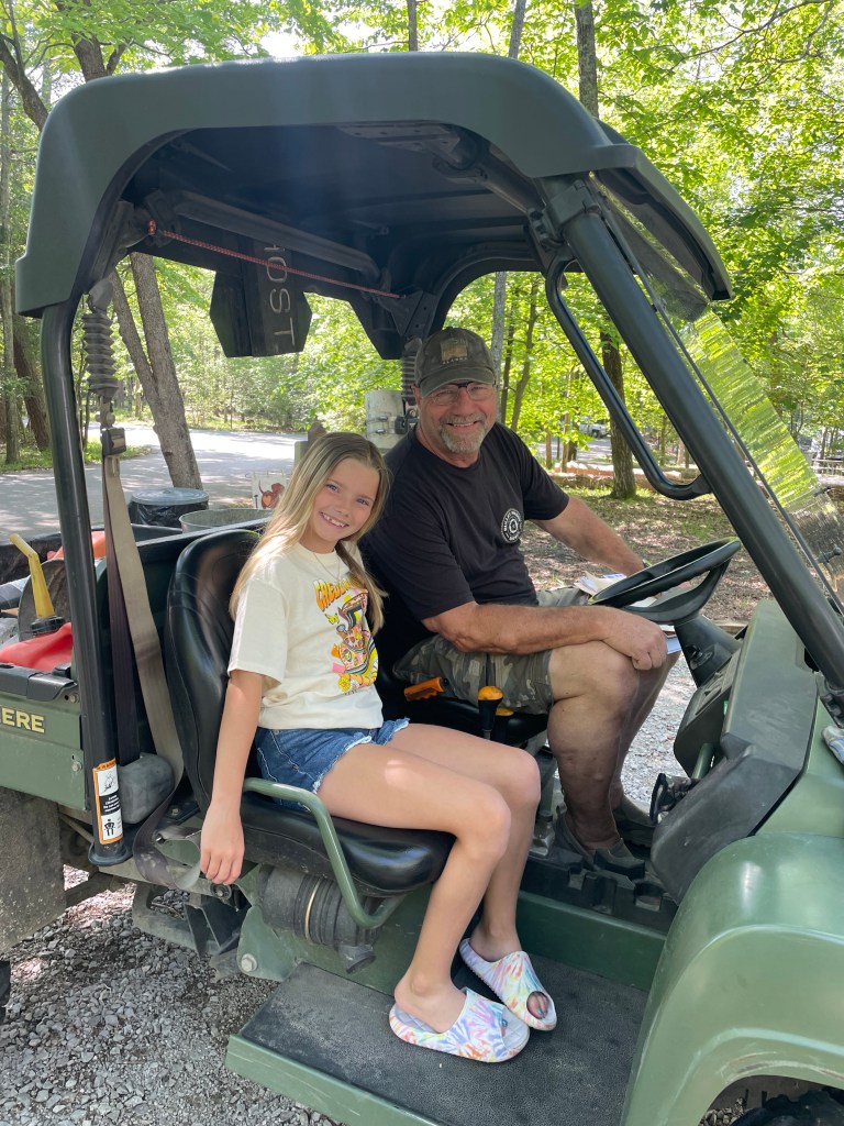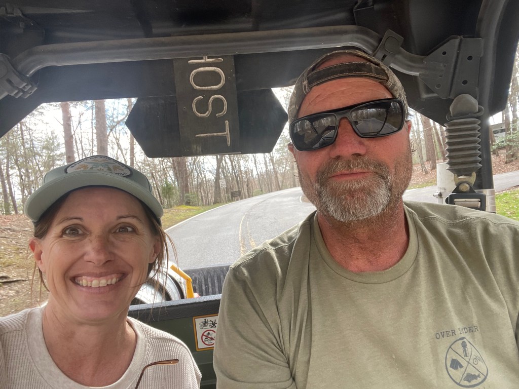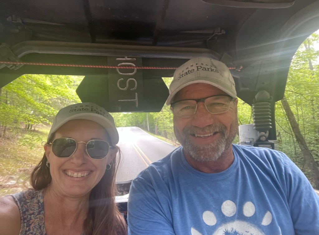 Fall Creek Falls has a whopping 202 campsites! As part of our camp hosting responsibilities, we’re given a buggy to help us take care of the sites. Usually, there are at least two other camp hosts volunteering alongside us, so we divide the campground into smaller sections to make the workload more manageable. Each morning, we spend a few hours cleaning sites and hanging tags. In the early afternoon, we make rounds to check in with campers and offer any assistance they might need. Then, in the evening, we do another round to make sure everything’s running smoothly. It’s a job we really enjoy!