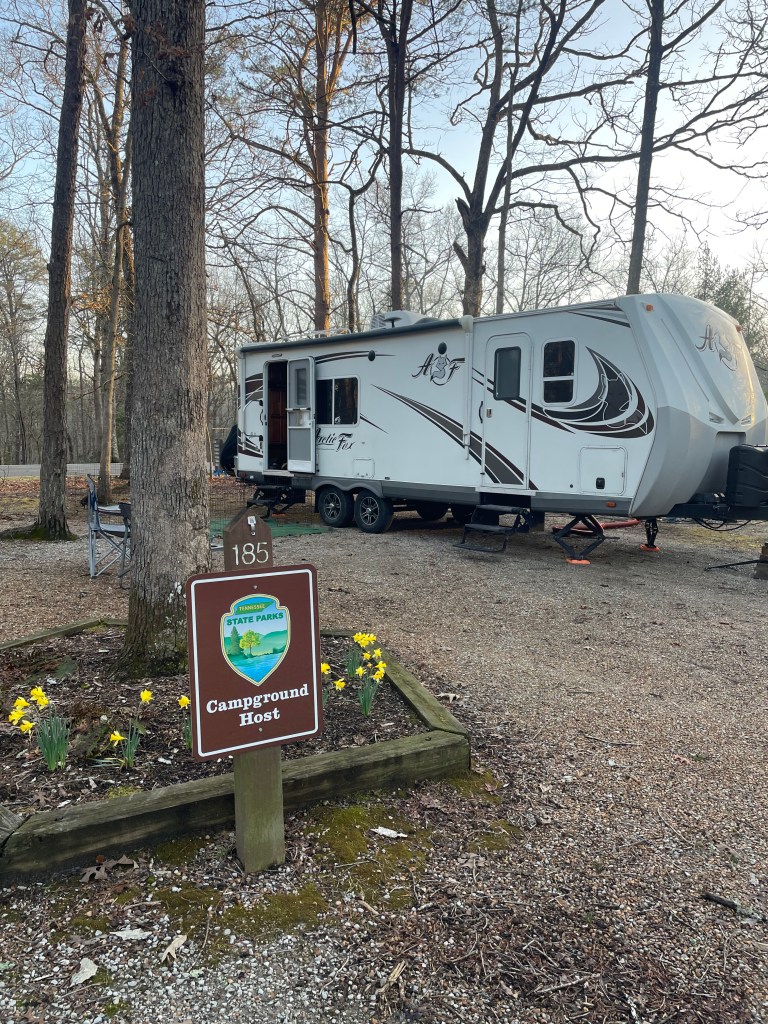 We applied and were thrilled to be accepted as camp hosts at Fall Creek Falls State Park in Tennessee. Our duties would include cleaning campsites—blowing off leaves and cleaning fire pits—as well as hanging camper tags. Additionally, we’d assist the park rangers whenever necessary. In exchange for our work, we receive a free campsite for the duration of our stay.