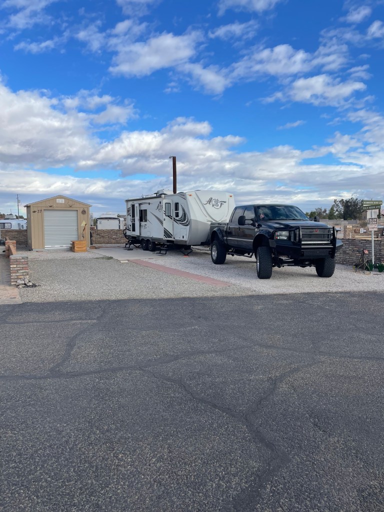 We said goodbye to California and headed east! First stop..Yuma, Arizona! We stayed at KoFa Ko-Op! Guys, they had the sweetest people in this park! So sweet! We had an axel alignment done on the trailer so we took care of business while we waited.